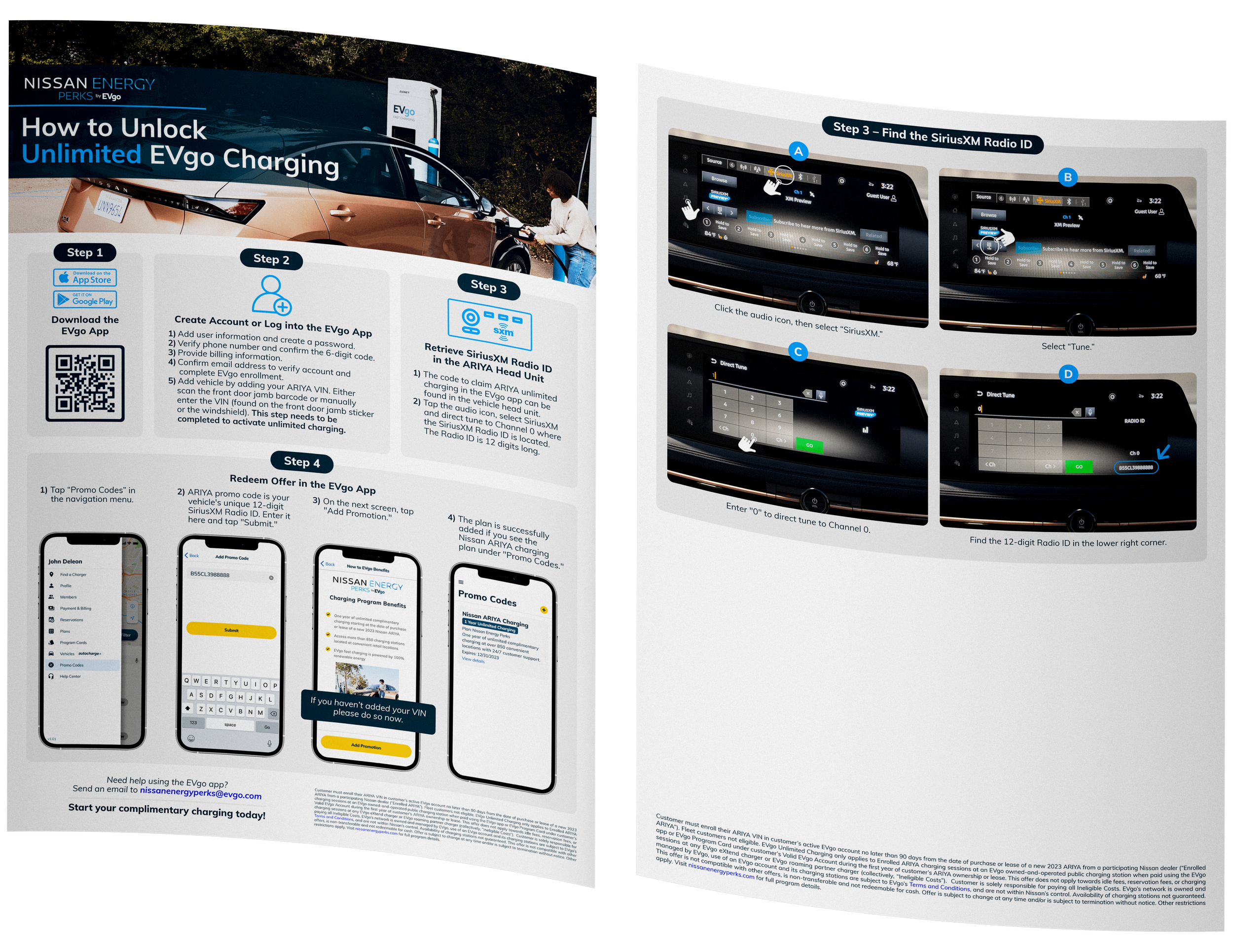 Onesheeters for Nissan, including two versions for dealers and buyers. Combining text, icons, and imagery to outline the process of registering with ease.